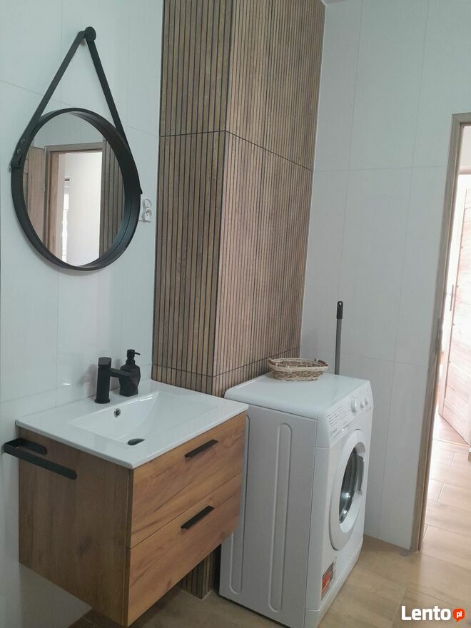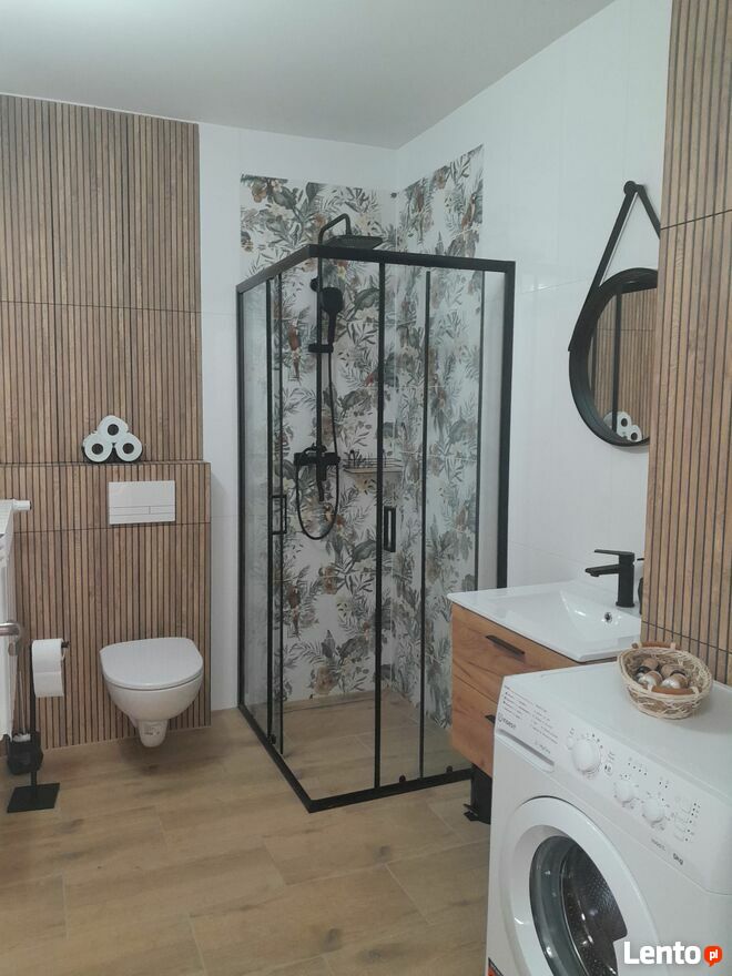 Łazienka wyposażona jest w prysznic, umywalkę, toaletę, pralkę oraz jednorazowe balsamy , mydełka i papier toaletowy.